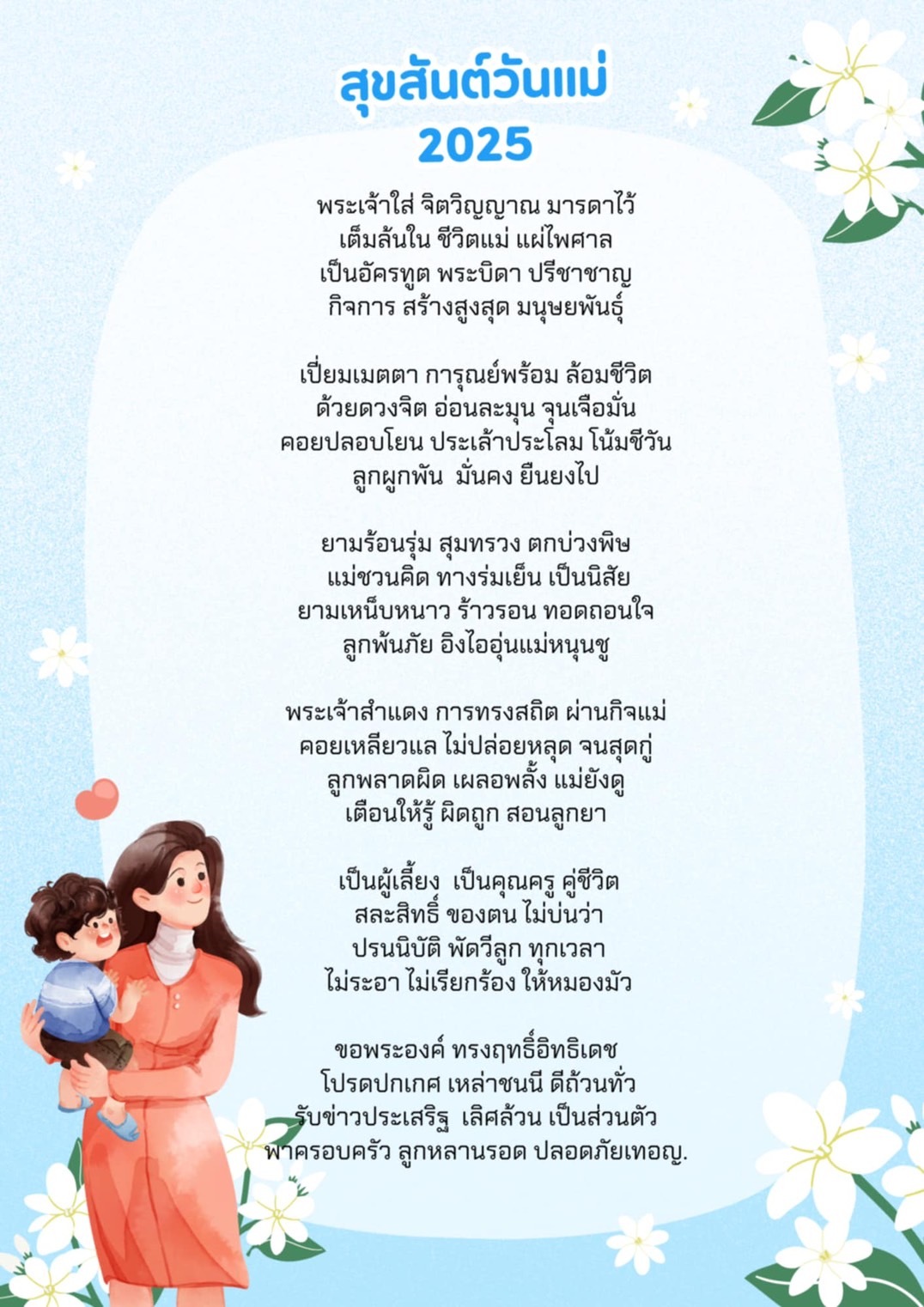 บทกลอนแด่คุณแม่ สุขสันต์วันแม่ 2025
